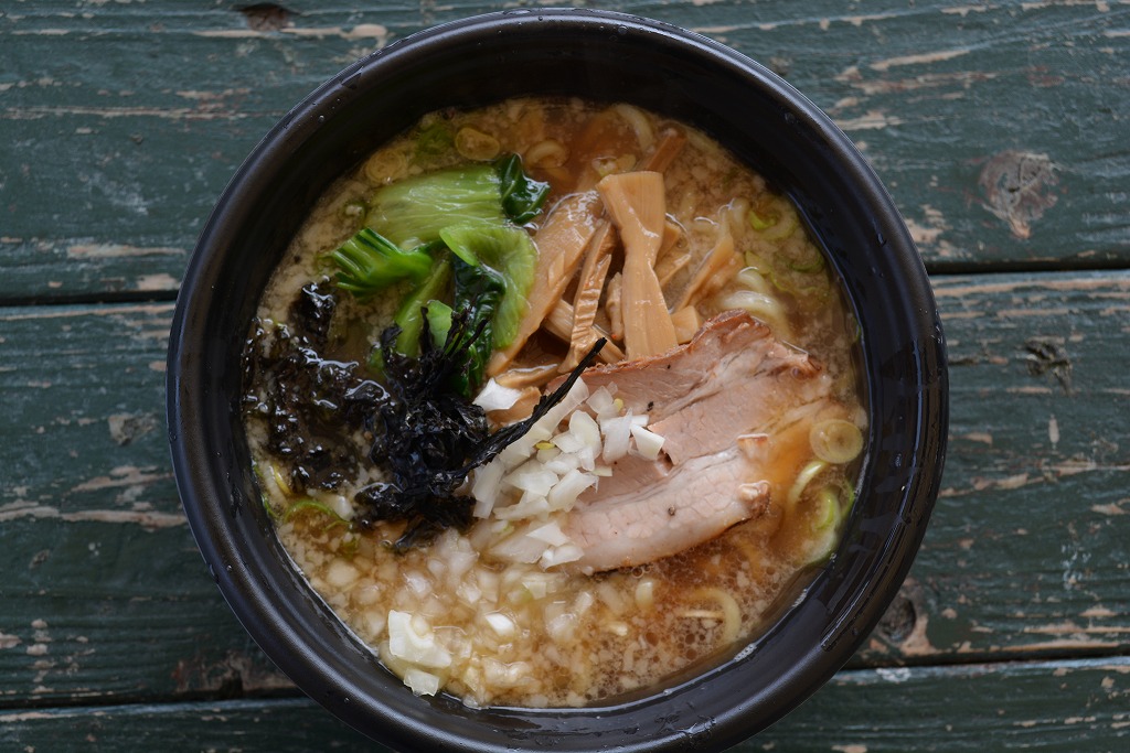 美味しい。次は最も長い列の新潟から参戦の「背あぶら煮干しラーメン」!