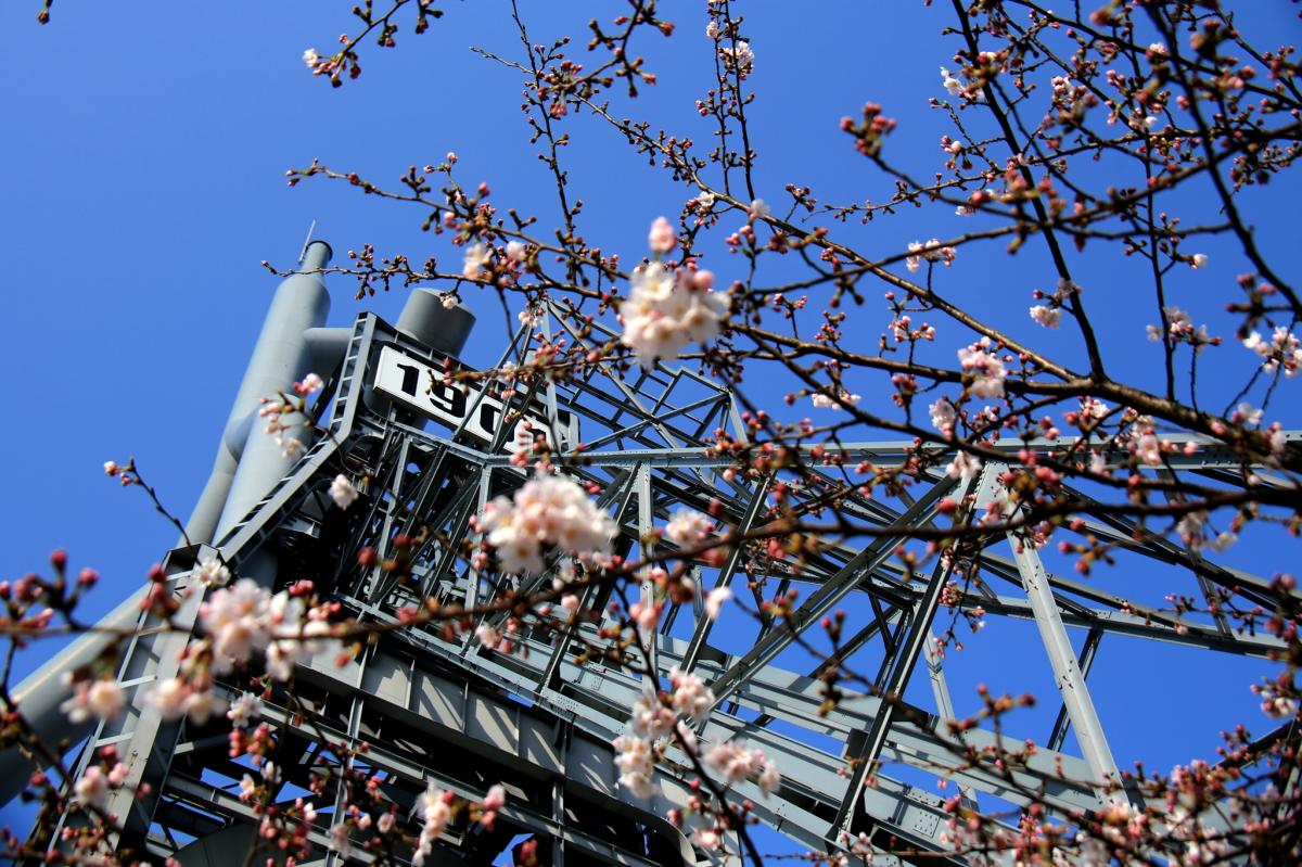 看板に1901と書かれた近代化産業遺産。鉄に命を授けるように火入れしたのは、看板が示す西暦で100年以上も前。「世界遺産」も過言ではない歴史的建造物だ。歴史に残る建造物は北九州が鉄の街であることの誇りであり未来への遺産でもある。日清戦争の契機により鉄の供給となったが、現在は既に火は落とされている。公園化され青空が似合う。鉄の街に相応しく、四季を通じて美しい景観を持つ巨大なモニュメントである。