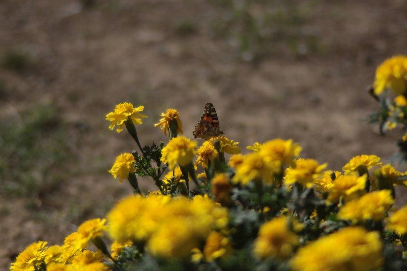 持ち直しきれいな花が咲いてます。蝶が飛んで来てるんですが、