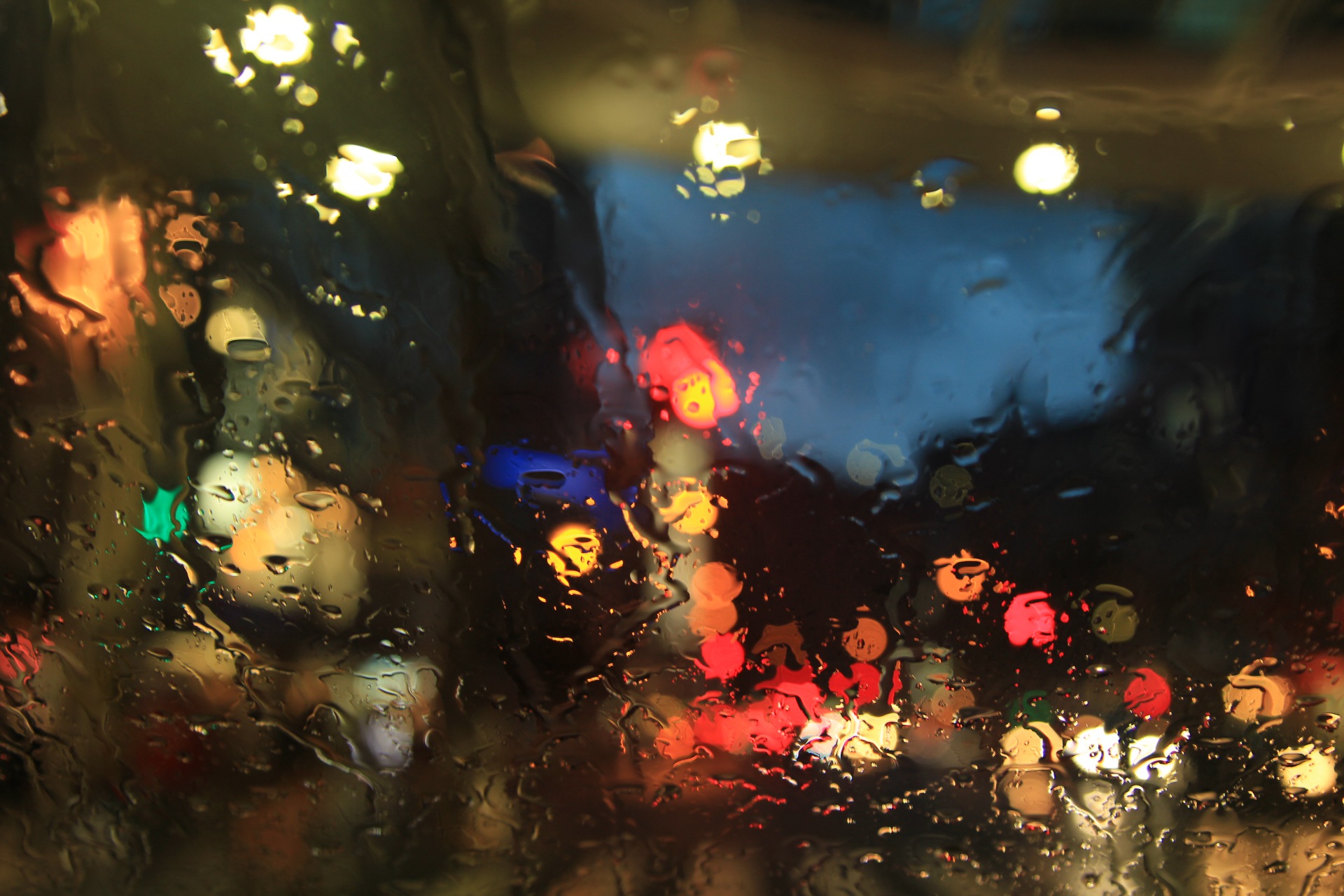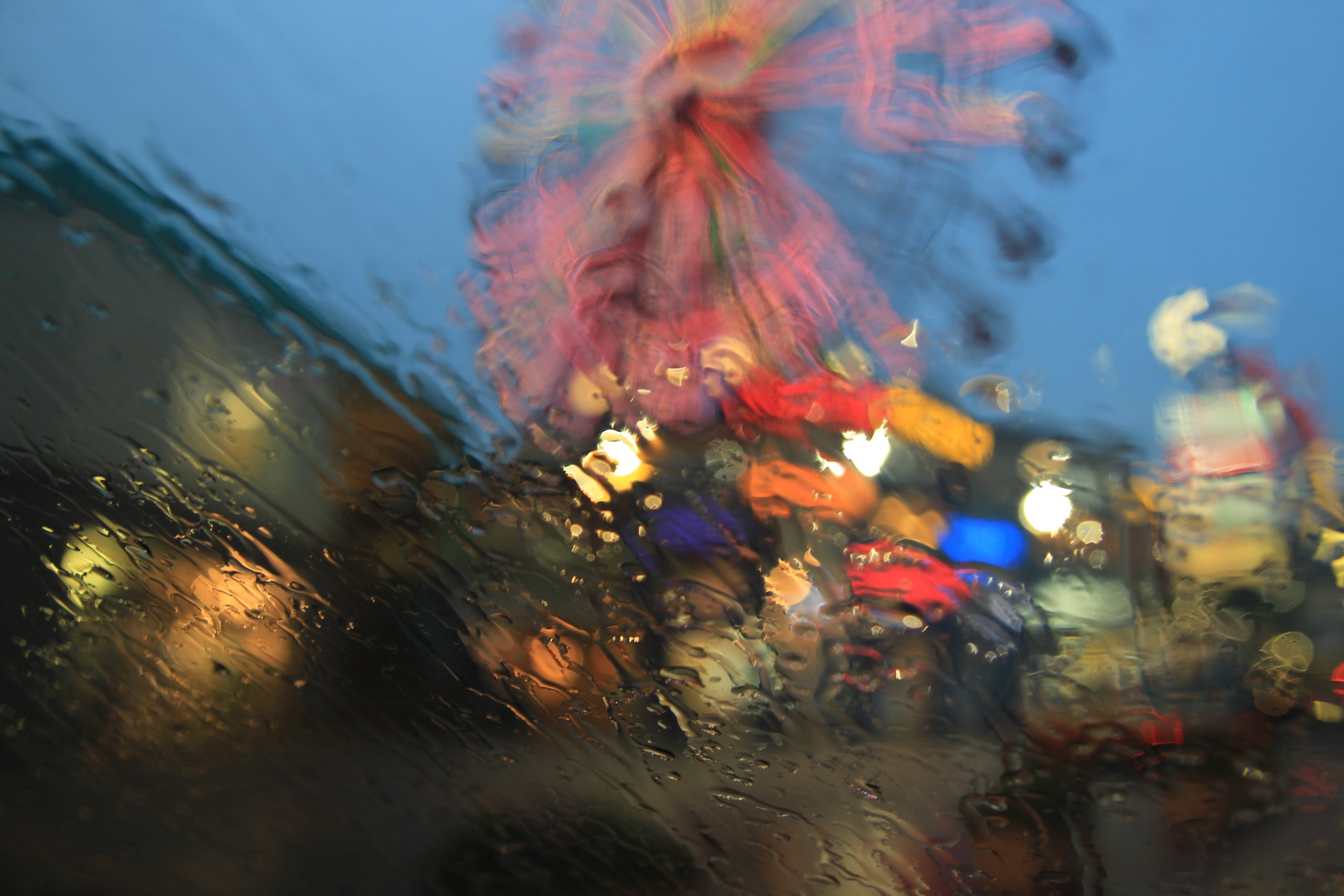 雨の日、ルームミラーから見える景色に、