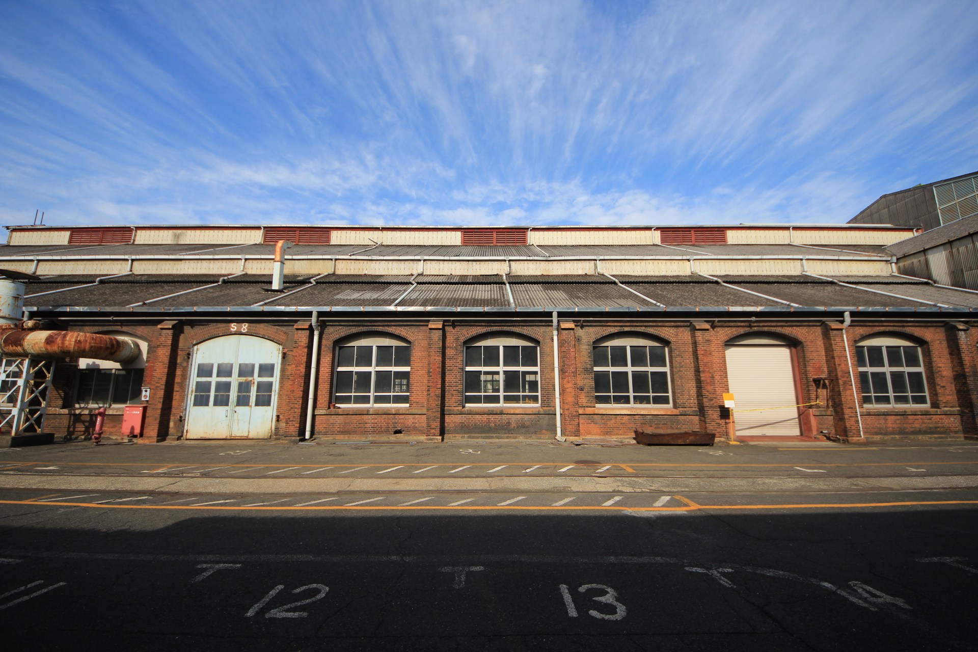 青空の下、クラシカルな煉瓦づくりの建物に囲まれ、