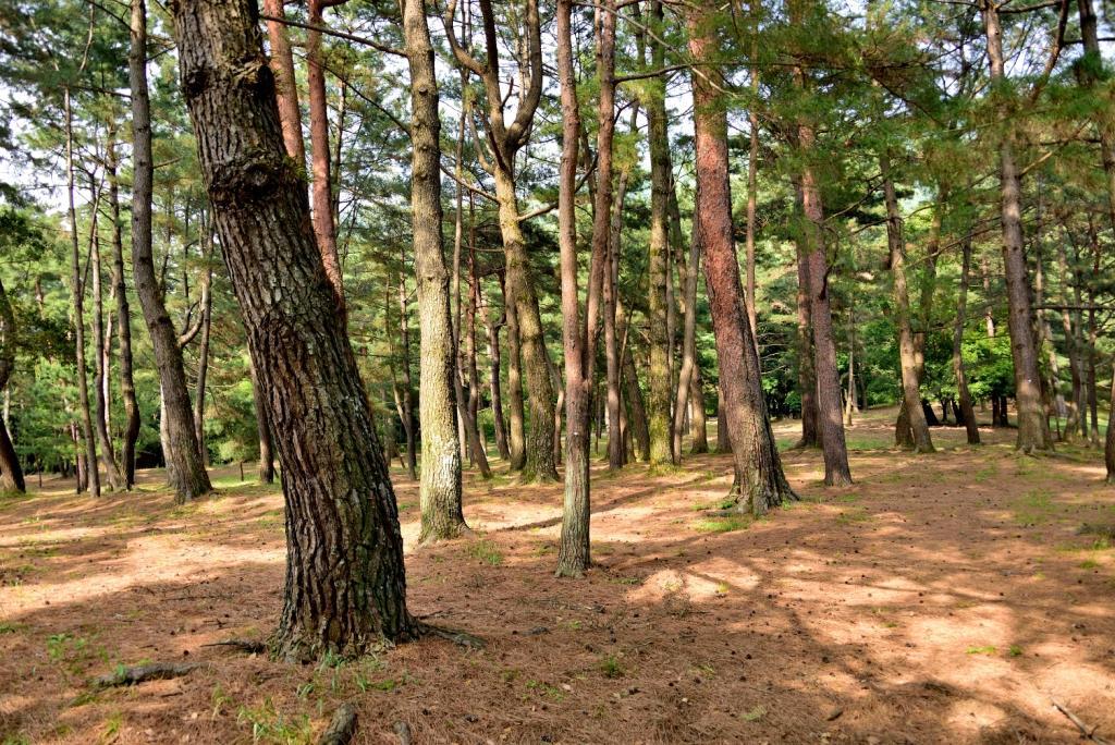 その後は雑草に覆われ赤松林に入るのはきのこ狩りの人くらいでしたが、緑化整備で公園化され森林浴を楽しめる美しい赤松林となりました。
