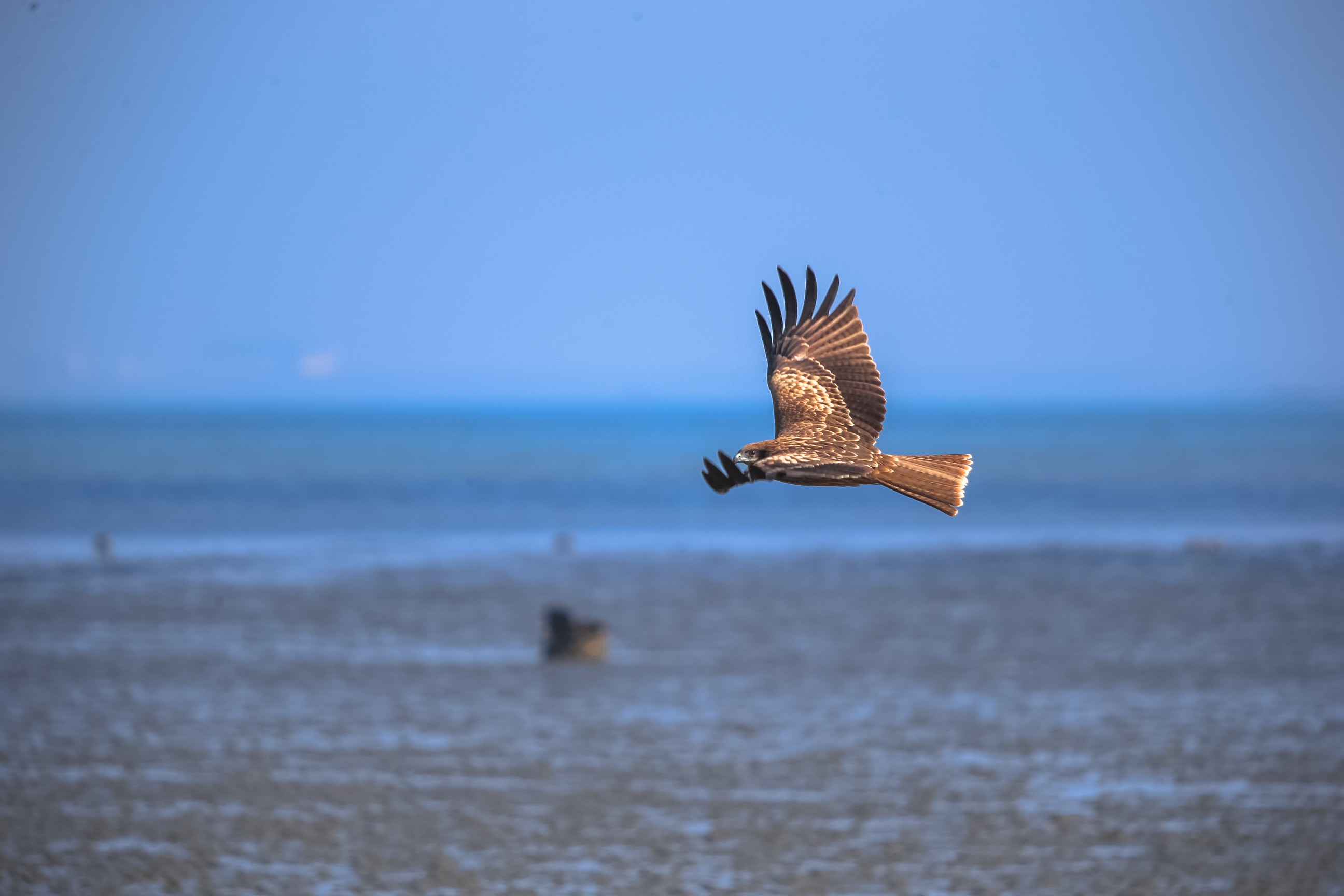 たくさんの野鳥たちが大空を羽ばたいていました。
