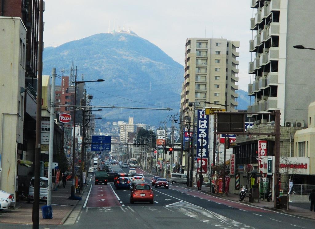 小倉北区中心地から八幡方面行きのバスに乗ると正面に皿倉山が、だんだん