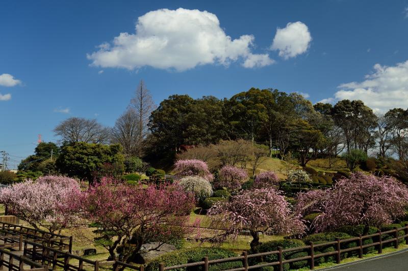 小倉南区の総合農事センターの実を収穫する梅林と、枝垂れ梅など花を鑑賞する梅林が在り、特に枝垂れ梅などを配した日本庭園風の梅林は絶景です。
