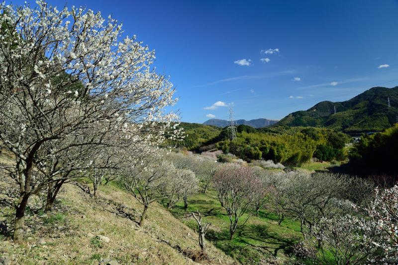 小倉南区の合馬タケノコ産地近くの「三岳梅林」は昭和天皇のご成婚を記念して植樹されたのが始まりで白梅が谷を埋め尽くします。
