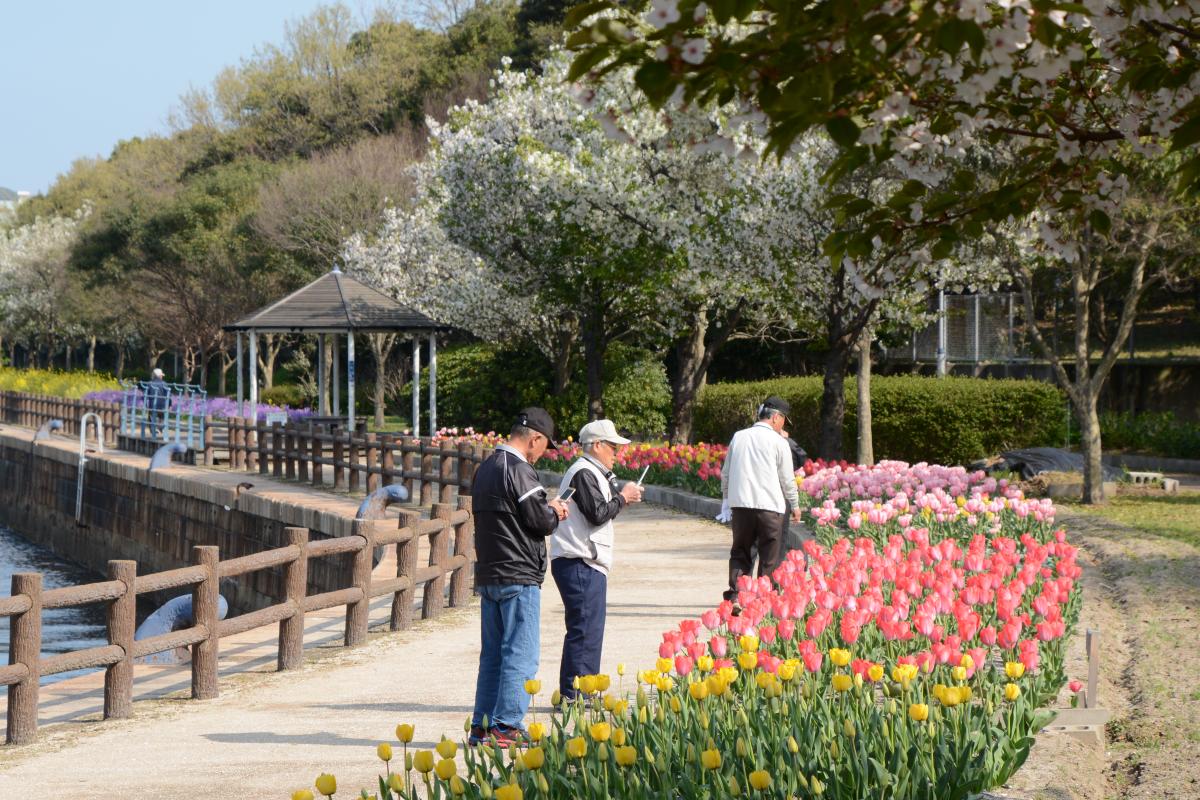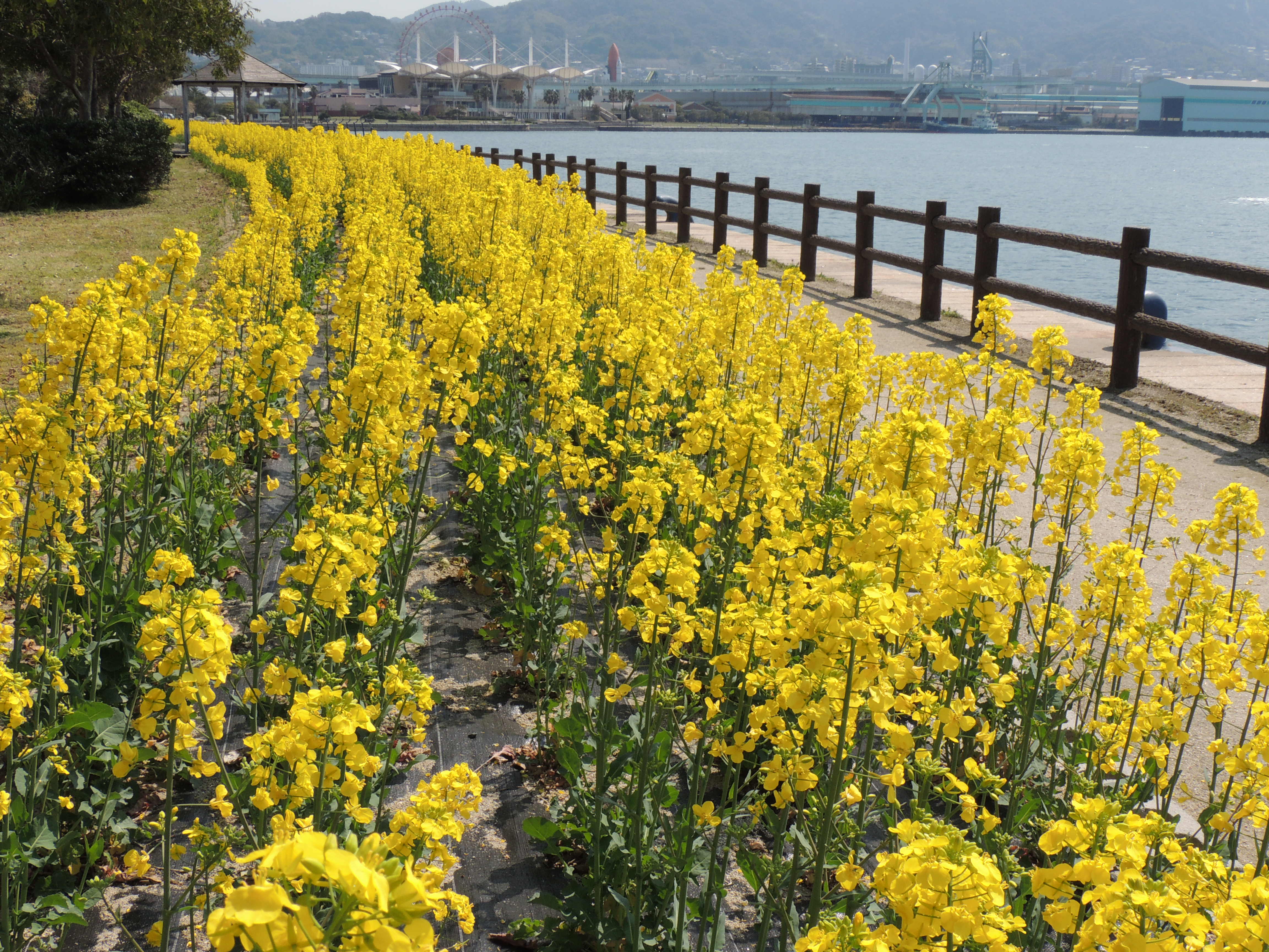 八幡東区の歩道緑地は、ウインズ八幡(JRA)の裏側にあって、洞海湾に沿って潮の香りが漂う1Kmほどの彩豊かなウオ-キングロ-ドです。