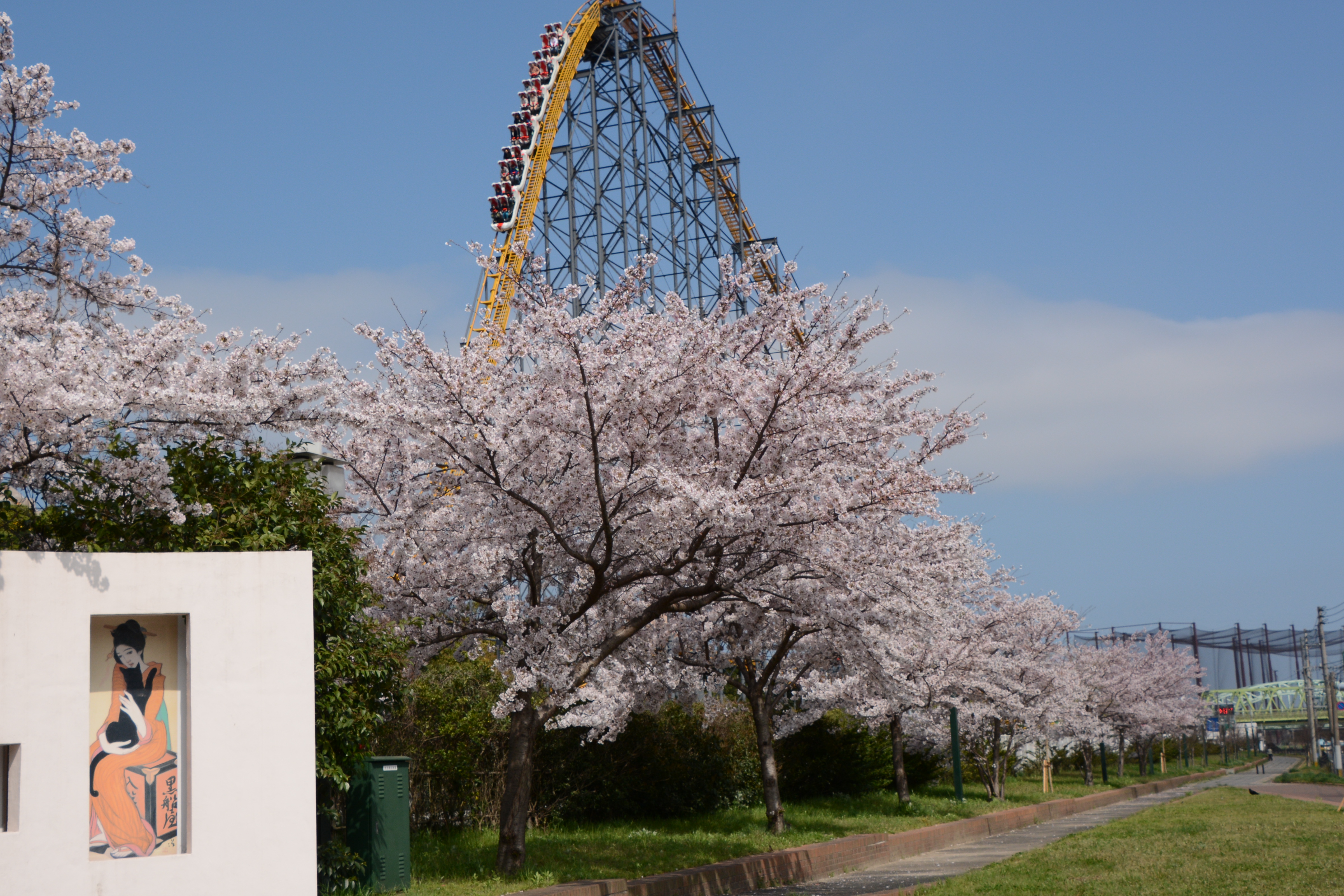 今春からスペ-スワ-ルドにタイタンが導入され、桜並木に黄色い絶叫が響くようになりました。