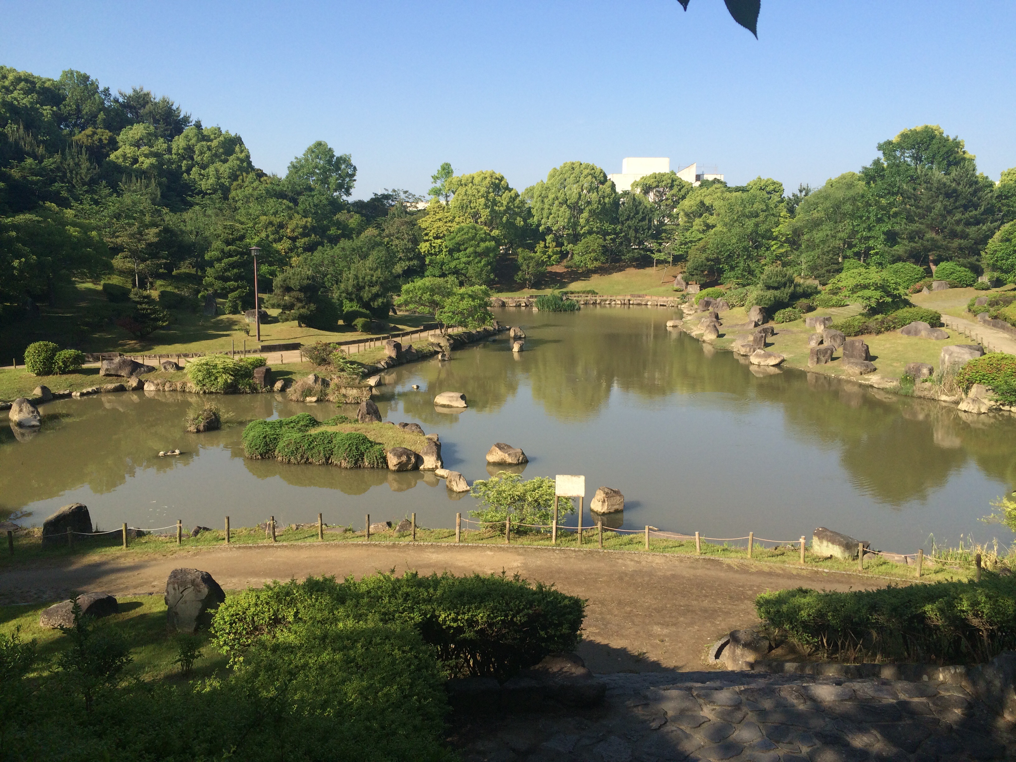 ひょうたん型の池の周りにはたくさんの草花が咲いています。