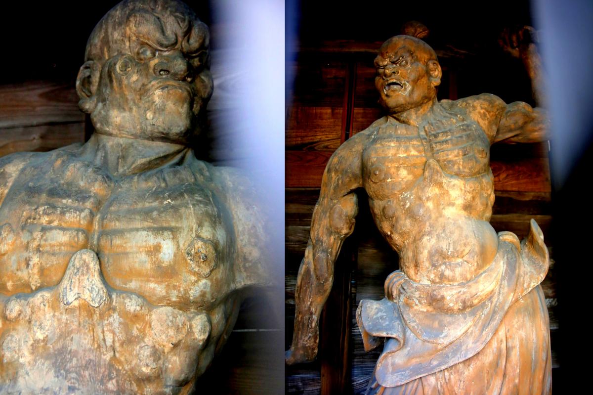 山門に向かって右側の像は阿形(口を開いている)は、左の像は吽形(口を閉じている)と対になっており、まさに阿吽(あうん)の一対の彫刻像で、堂々とし、威厳に満ち溢れており、圧倒されそうになる。