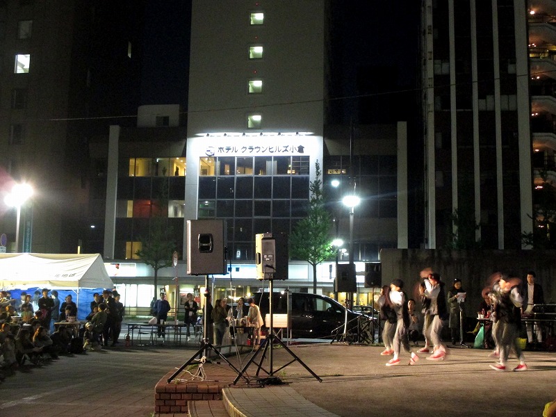 昨夜はキッズダンスチームがたくさん出場、露店も出て更にホルモンの炭火焼もあり、