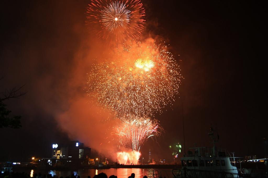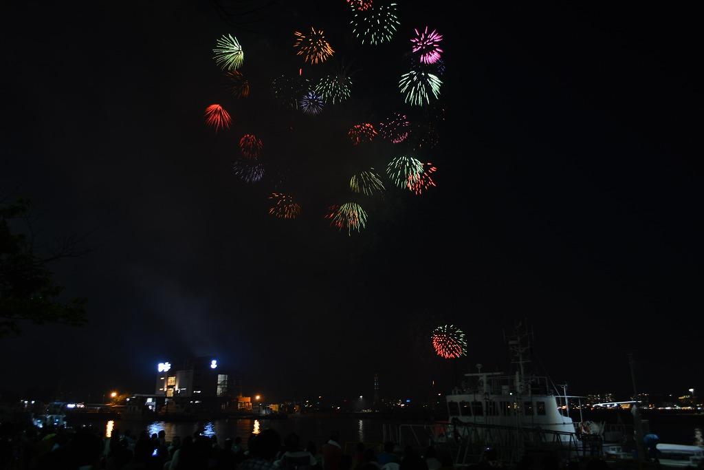台船からの打ち上げ花火も素晴らしく、夏を彩る花火大会にふさわしい演出でした。