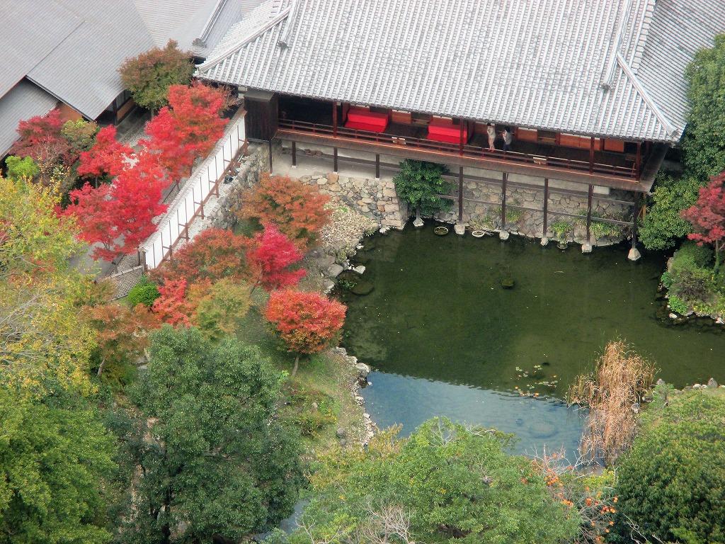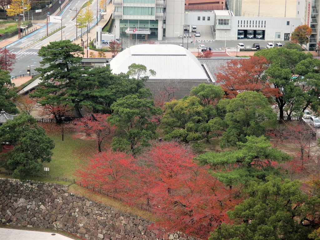 小倉城周囲の紅葉全体を見るには高いところが一番です。
