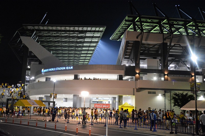 3月のグランドオープンから4度目の観戦で初めてのナイター、雨の予報でしたが