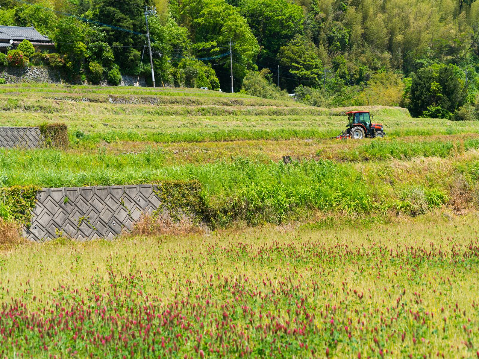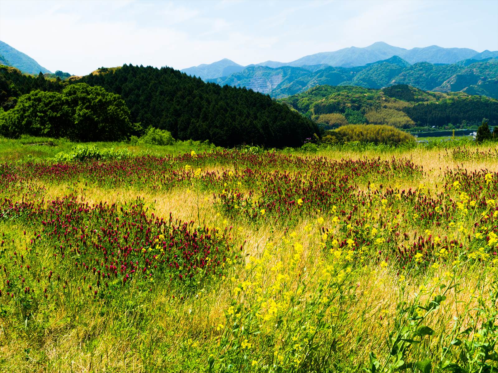 平尾台で期待した紫蘭に出合えなかったので、井手浦の方まで足を延ばしてみたら去年は見掛けなくなっていた紅ツメクサの田んぼに出合えた。