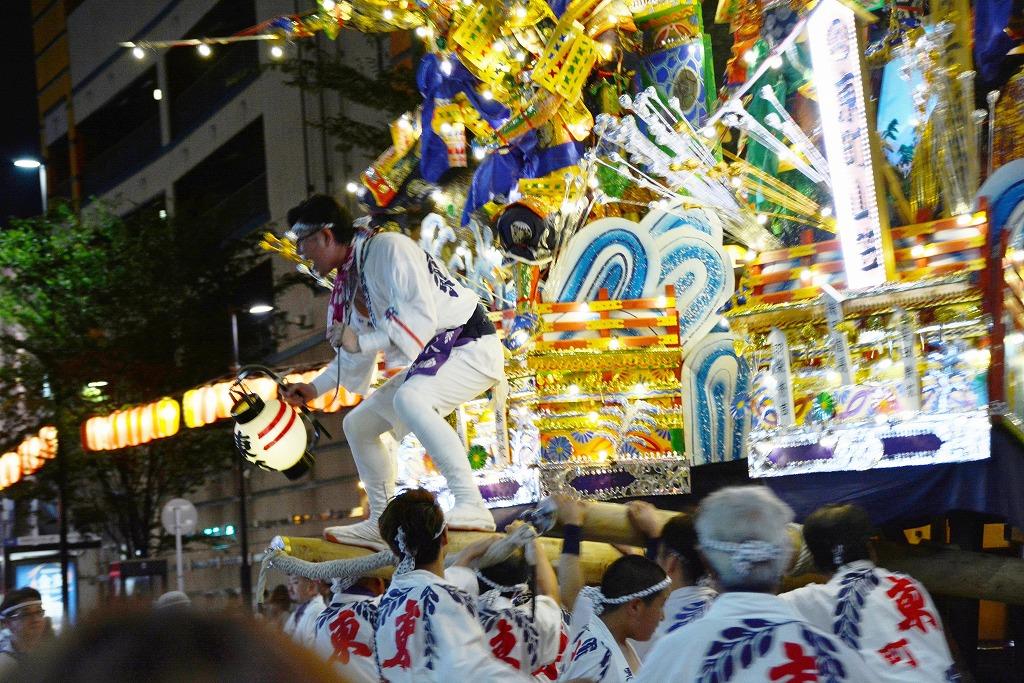 派手すぎる山笠ですが、夜のとばりが落ちた街にはぴったり似合います。