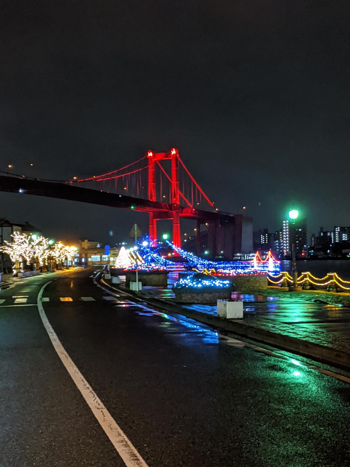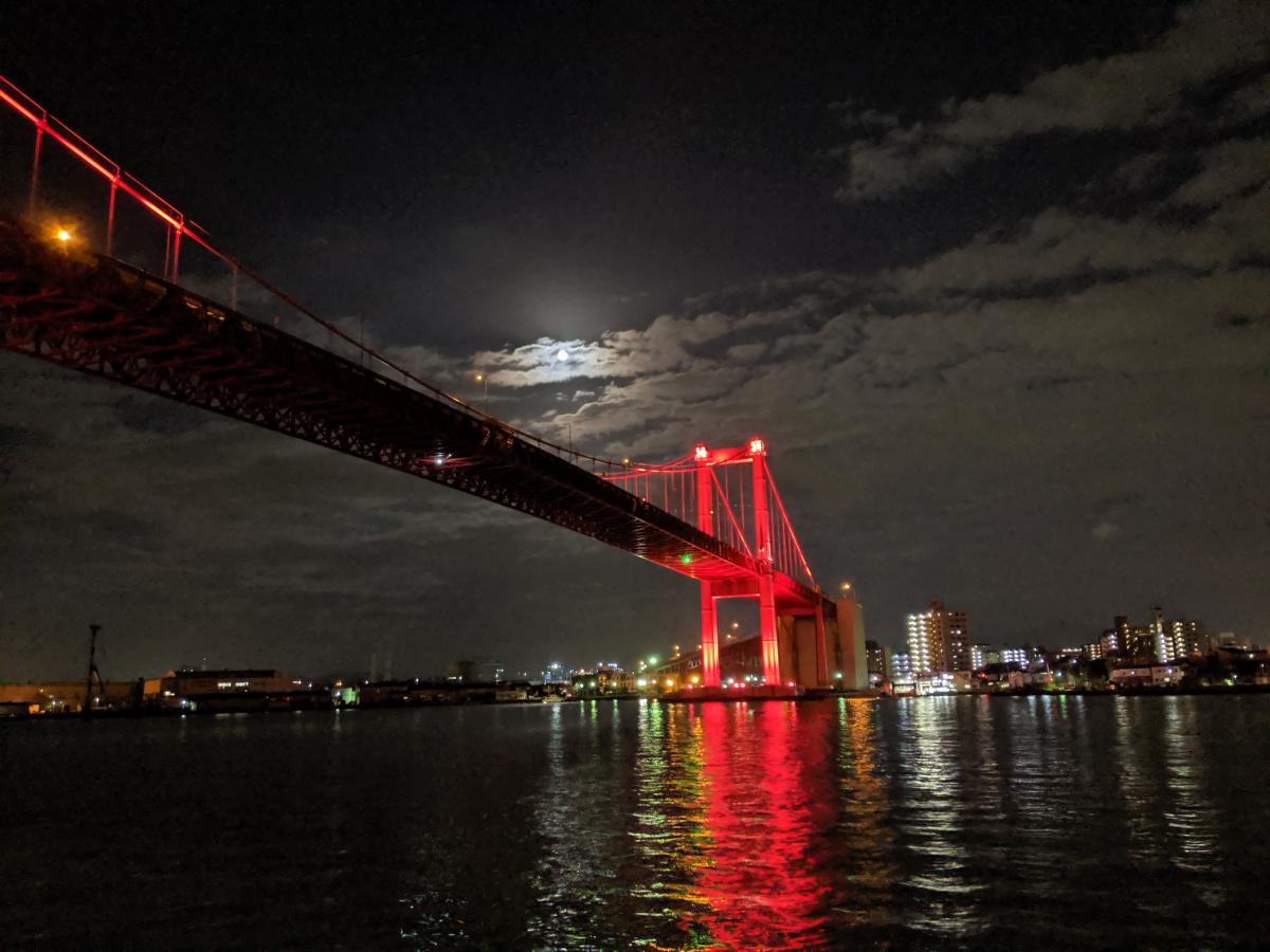 昔は死の海というありがたくない名前をつけられましたが、今ではきれいな海に生まれ変わり、真っ赤な橋の色が輝いて見えます。