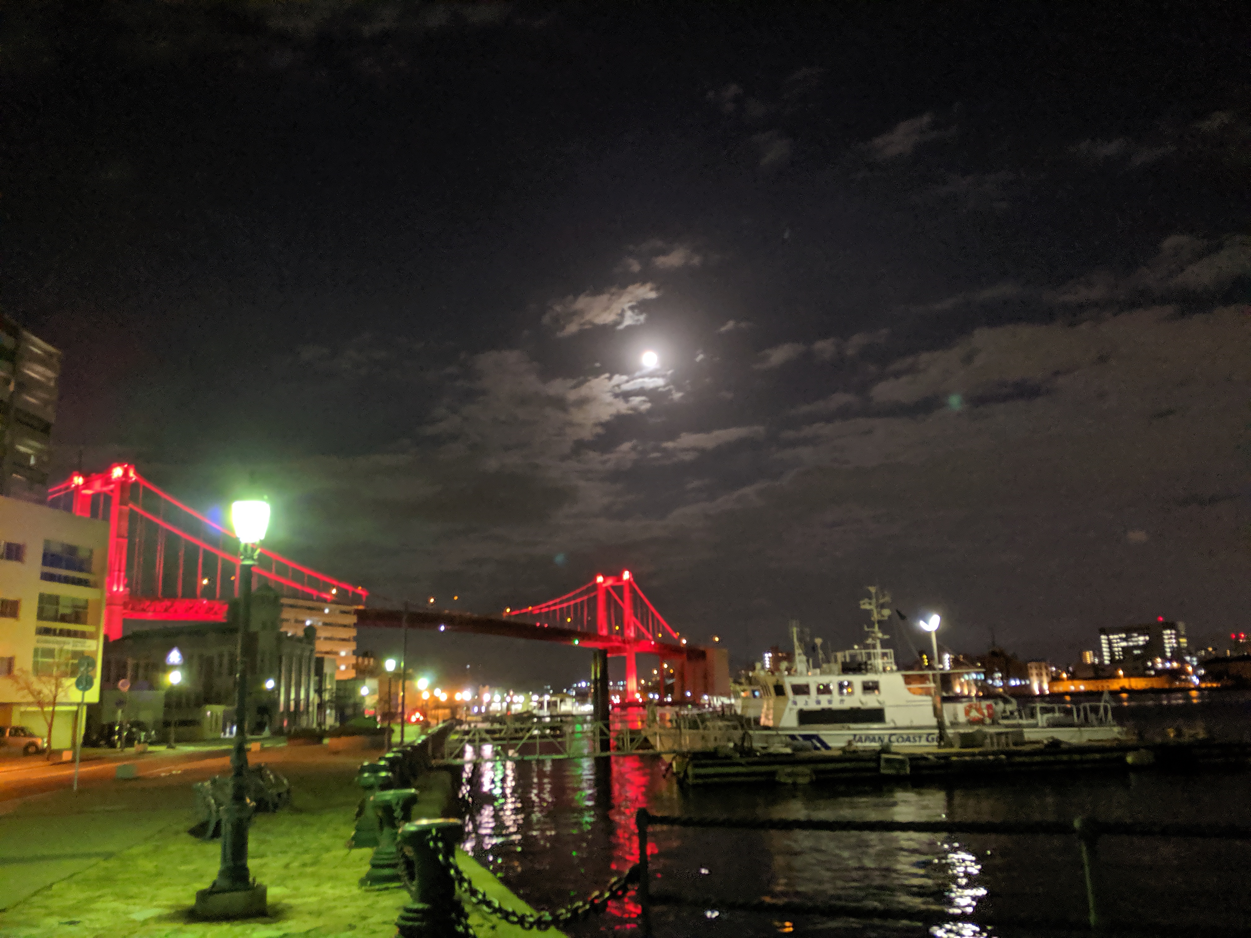 歩道を歩いたり、自転車をこいだりして若戸を往復してました。