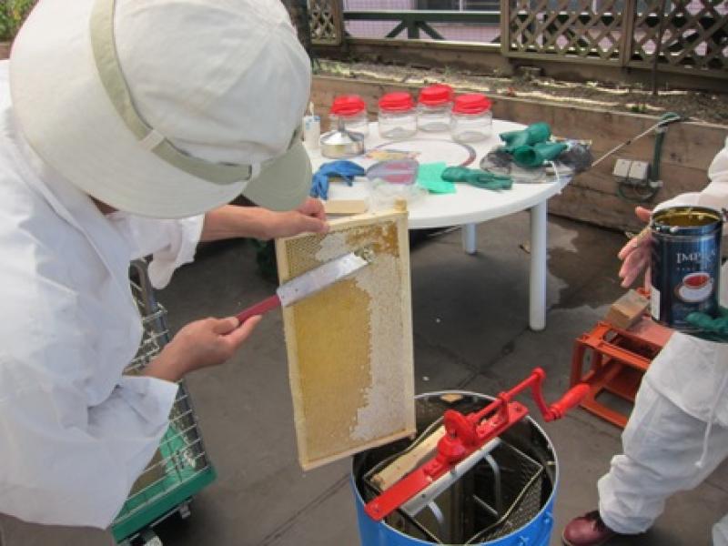 特別にみつばちのお世話の様子を見せていただきました。