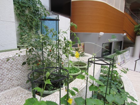 サテライトスタジオ横に実をつけた野菜のプランターたち。