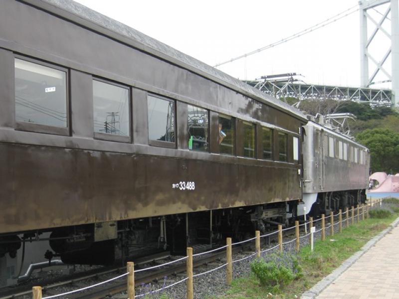 九州最北端の駅である、門司海峡めかり駅(門司港レトロ観光列車「潮風号」)近くに展示されています。